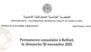 Mardi 11 novembre 2025 Il est porté à la connaissance des ressortissants algériens et du public relevant de la circonscription consulaire de Besançon que les services du C...