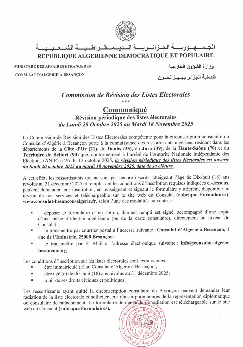 Révision périodique des listes électorales du 20 octobre au 18 novembre 2025